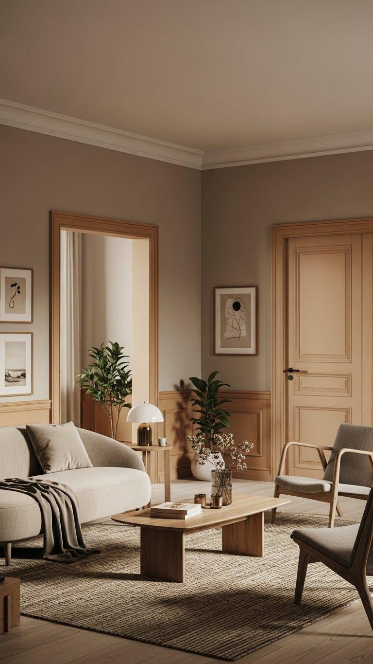 When you choose warm neutral walls and soft paint tones, you create a calm, versatile backdrop that instantly makes a modern living room feel inviting and polished. You’ll favor warm taupes and muted ochres to balance sunlight, highlight sculptural furniture, and free your layout to breathe. Subtle contrasts in trim and doors sharpen edges, letting art and plants define personality without visual clutter.