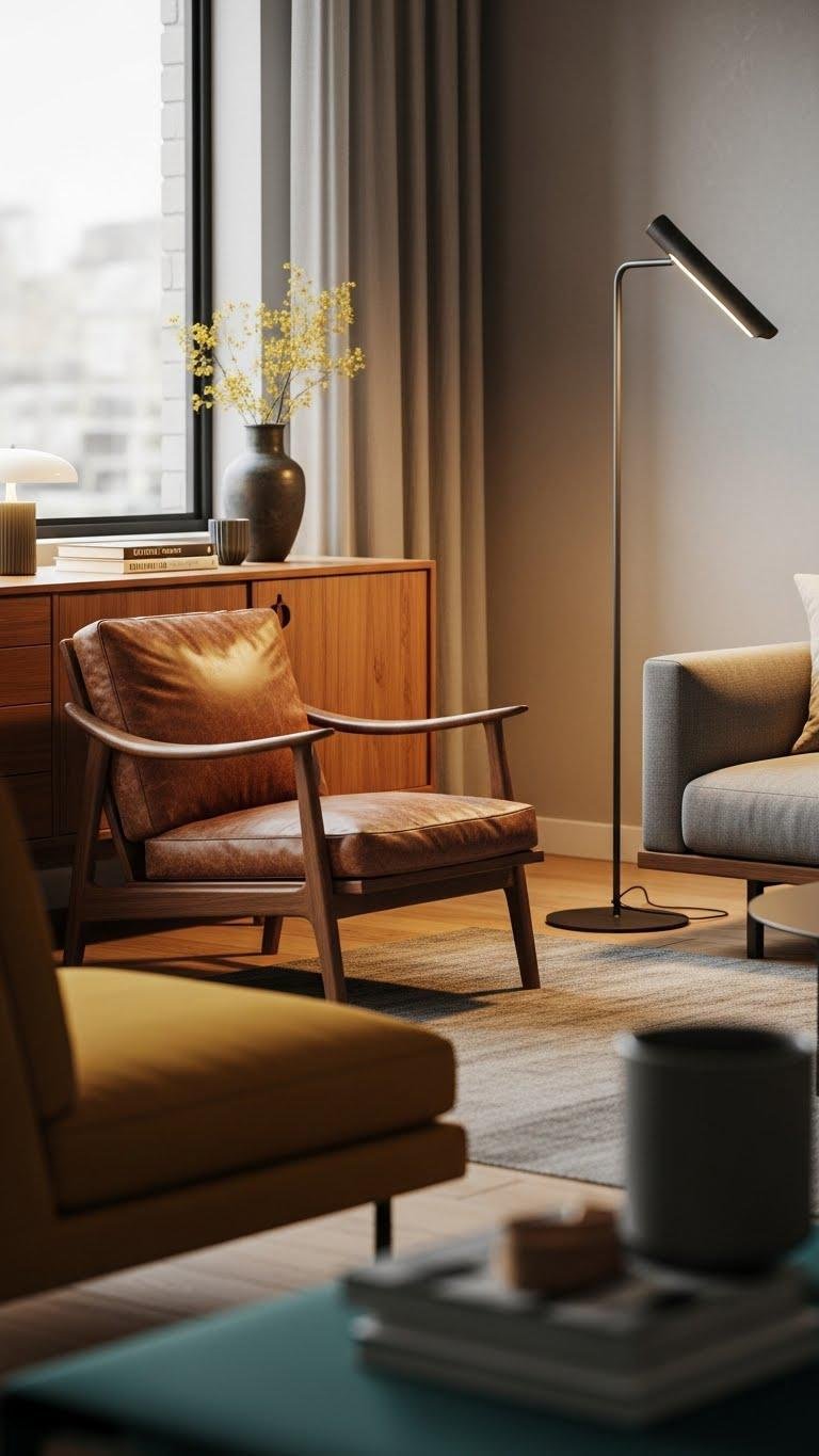 Blend vintage finds with modern pieces to give your living room depth and personality—let the patina of a mid-century credenza or a weathered leather armchair converse with a sleek metal floor lamp or minimalist sofa.