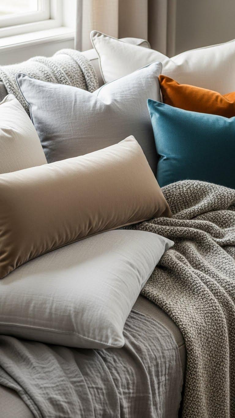 You’ll layer a plush lumbar with velvet, linen, and nubby boucle throws to create effortless contrast.