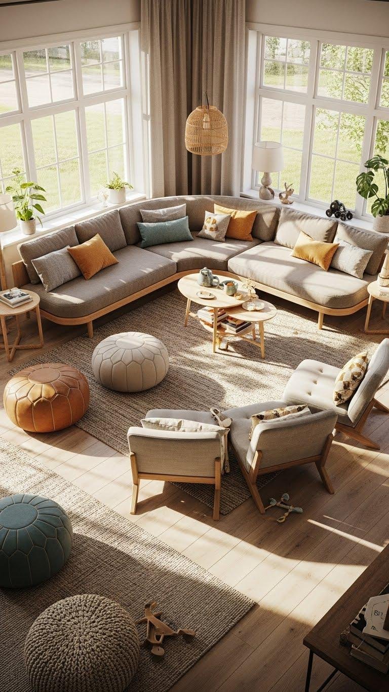 Mix a high pile cozy rug over a flatweave with geometric layering to define seating. Use a jute underlay for grip and texture, and employ rug anchoring—furniture feet and non-slip pads—to keep zones feeling deliberate and free.