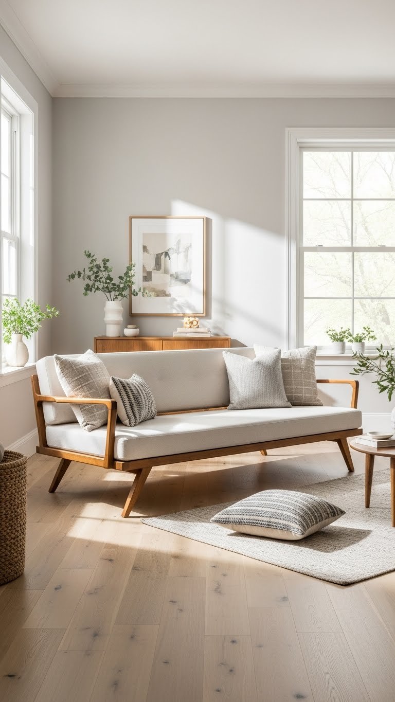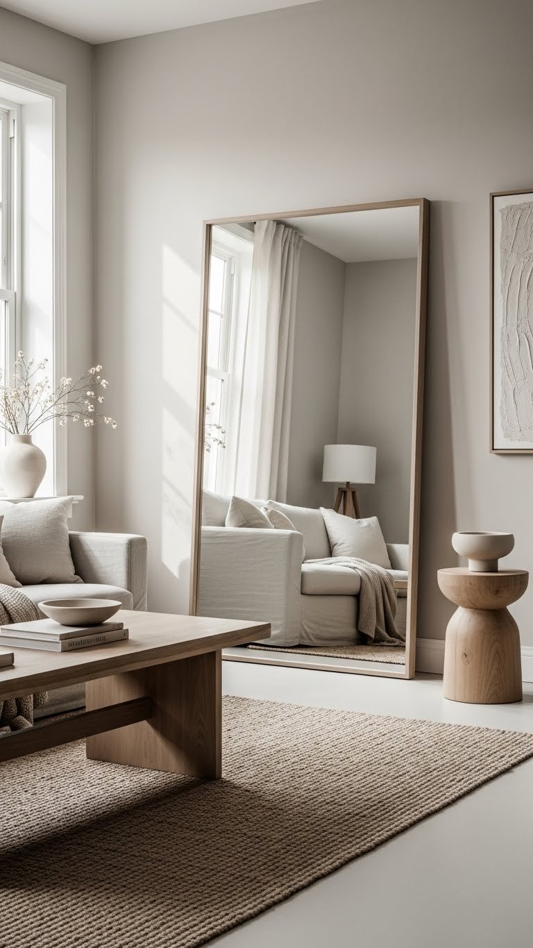 Hang an oversized mirror to instantly amplify light and open up a neutral living room, reflecting both natural rays and your carefully layered textures to create depth without adding clutter. Position it as a reflective focalpoint opposite windows or art for maximum effect.