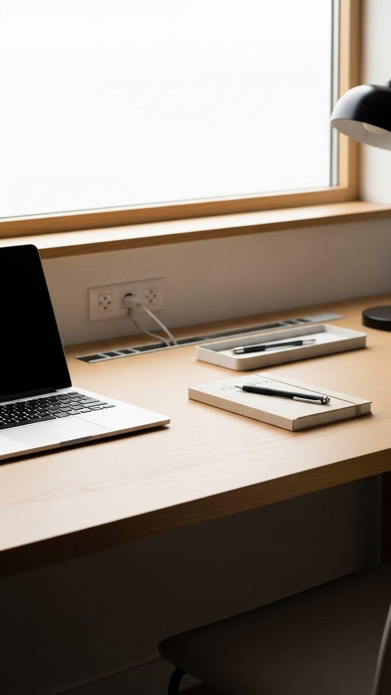 Against a backdrop of clean surfaces and open sightlines, organize cables and tech so your workspace looks intentional and functions without friction.