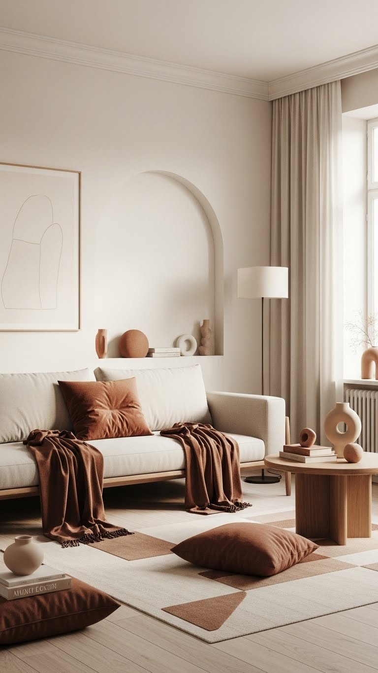Warm Minimalism Living Room With Soft Terracotta Accents