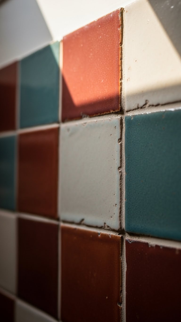 Visible-Joint Handmade Tiles in a Shower