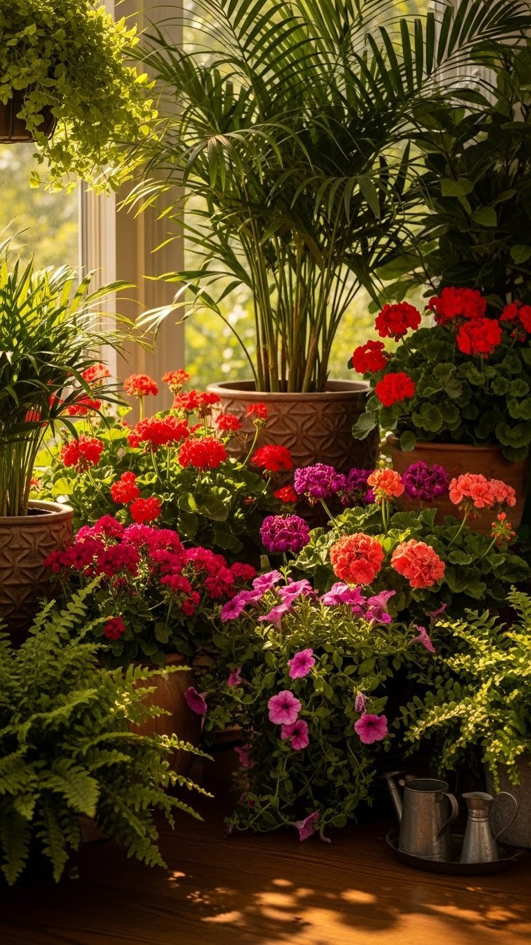 Summer-ready porches sing when you mix lush, heat-tolerant foliage with bold seasonal blooms that thrive in sun and humidity. You’ll pair tropical palms with bright geraniums or petunias for drama, then soften edges with a fern grouping in shaded corners. Choose durable pots, rotate thirsty plants into afternoon shade, and keep a simple watering rhythm so your porch feels free, vibrant, and welcoming.