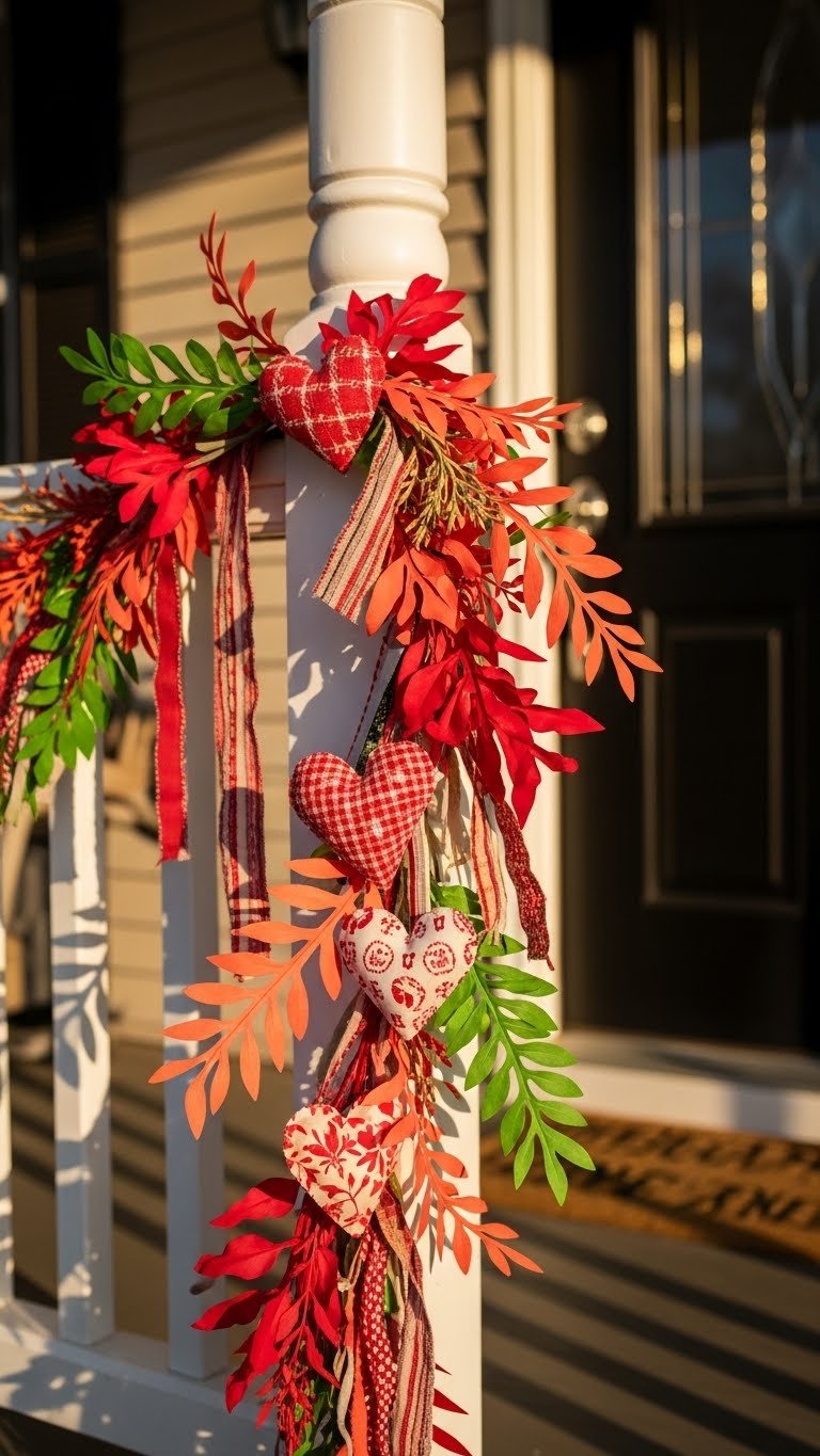 You can carry that same cozy, handcrafted feeling from your lantern display into February by reworking leftover garlands into bright, modern accents. You’ll craft recycled heartstrings with small hearts and bold February foliage sprigs, tying pieces with upcycled ribbon. Hang a valentines garland along the porch rail or frame the door, letting playful, liberated color signal warmth and welcome for neighbors and guests.