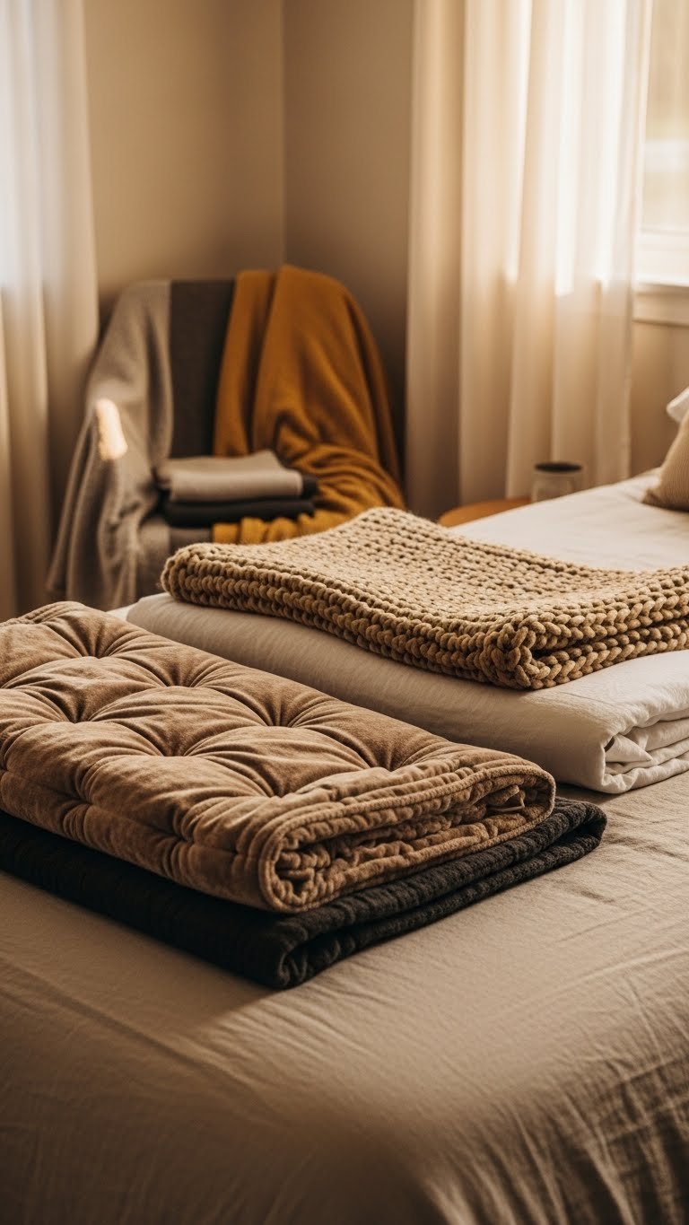 A few carefully chosen throws can transform your bedroom into a tactile sanctuary, layering plush textures that invite touch and slow, cozy evenings.