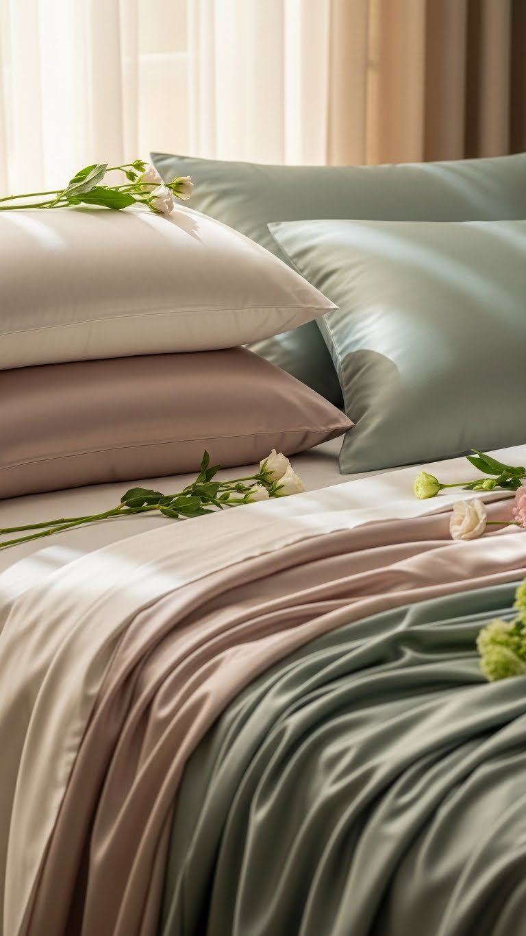 Bring the fresh, living energy of stems into the tactile world by layering silk or satin accents on your bed; their subtle sheen and cool touch play against floral softness to heighten sensuality. You’ll choose pillowcases, throws, and shams that whisper luxury. Follow concise silk care tips to preserve drape; trust satin sensuality studies showing tactile cues boost intimacy and confidence.