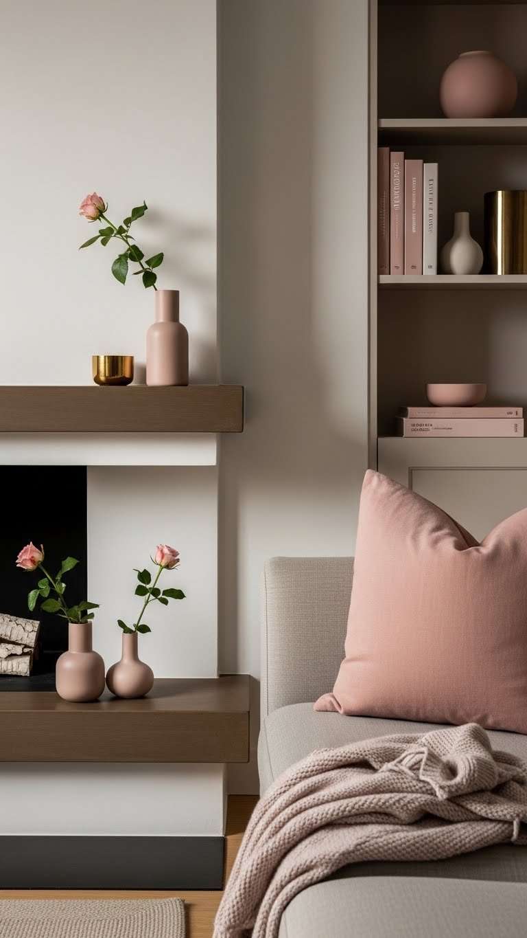 Slide in a few subtle touches and you’ll keep January feeling fresh without shouting “holiday décor.” You’ll favor a romantic minimalist vibe: think single-stem vases, blush pillows, and matte metallic accents. Tuck subtle rosebuds into bookshelves or a mantel tray, swap a throw for a lightweight knit, and let restrained color shifts whisper warmth — freedom-focused, modern, and effortlessly intimate.