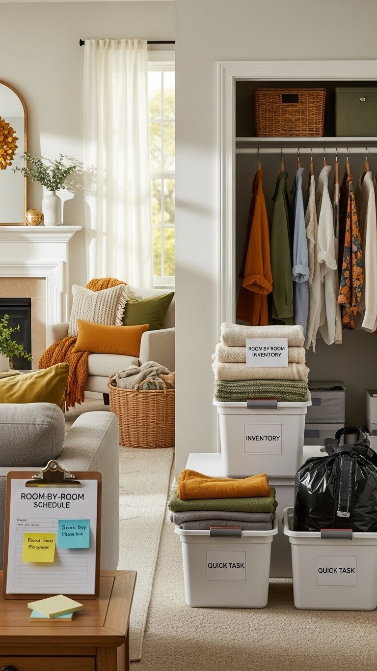 When the seasons turn, an organized planner keeps your decor swaps crisp and intentional so you’re not scrambling mid-weekend. You’ll map a swap schedule by room, note textiles, colors, and focal pieces, and set quick tasks. Pair that plan with clear storage solutions — labeled bins, vacuum bags, and a small inventory — so shifts feel effortless and freeing.