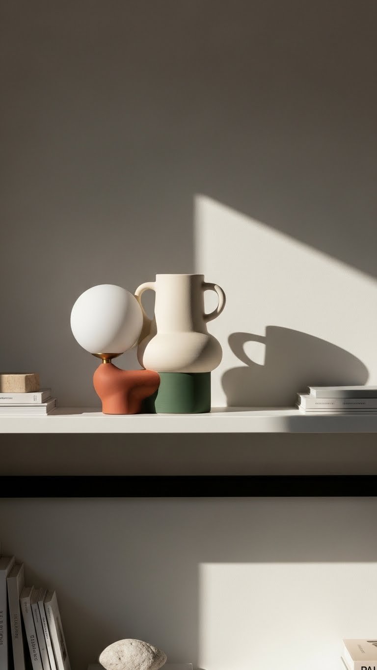 You’ll choose pieces that balance organic forms with a clean geometric trio—vary scale and texture so each piece breathes.
