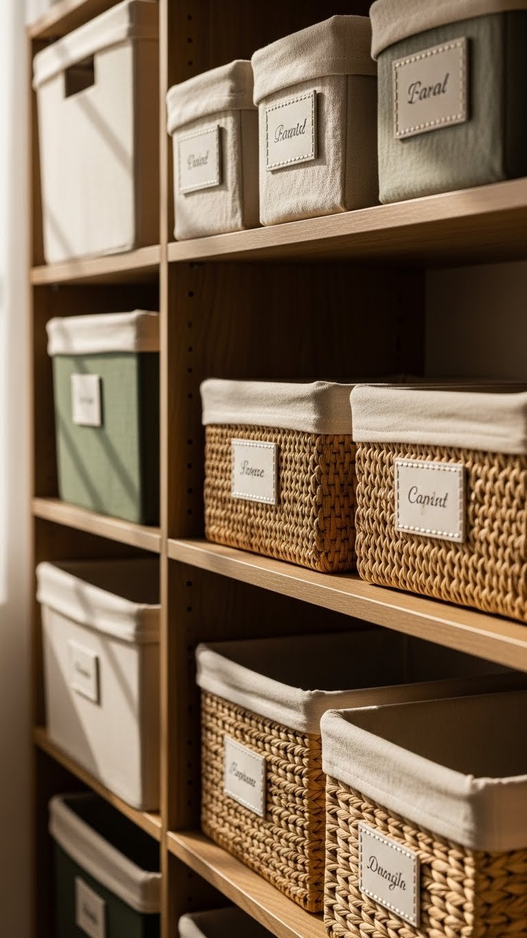 Open Storage With Labeled Baskets