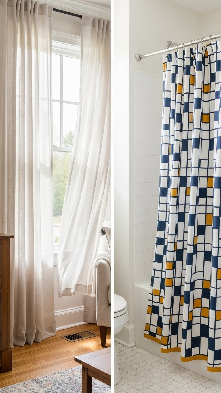 Swap heavier fabrics for airy panels, add contrasting liner trims for durability and a tailored look, and hang slightly higher to feel roomier. You’ll free the space without a major overhaul.