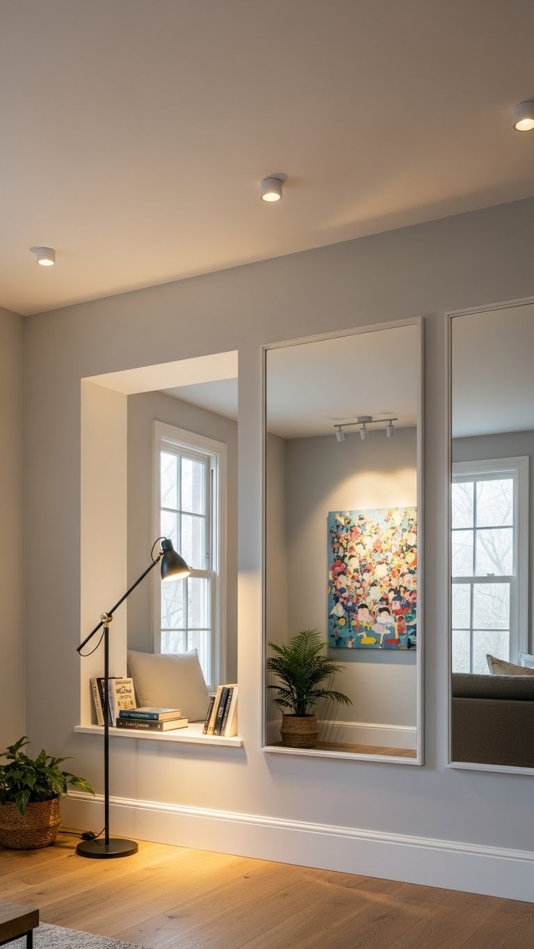 You can adjust brightness with layered lamps, dimmers, and task lights to suit mood and function. Position mirrors to reflect focal points, art, or light sources, expanding sightlines.