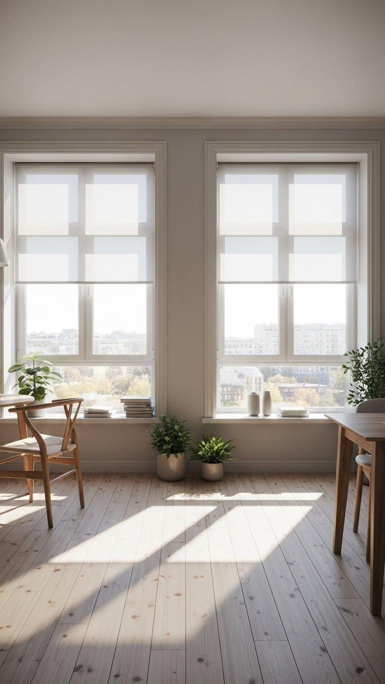 You’ll choose minimal window treatments, push furniture away from sills, and keep plants low. These choices help you maximize daylight, simplify sightlines, and free the room so it breathes and feels larger.