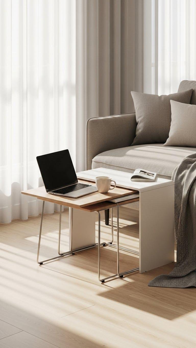 Choose lightweight, sculptural sets as space saving surfaces that feel airy. Embrace hidden nesting to keep your room uncluttered and let movement feel effortless.