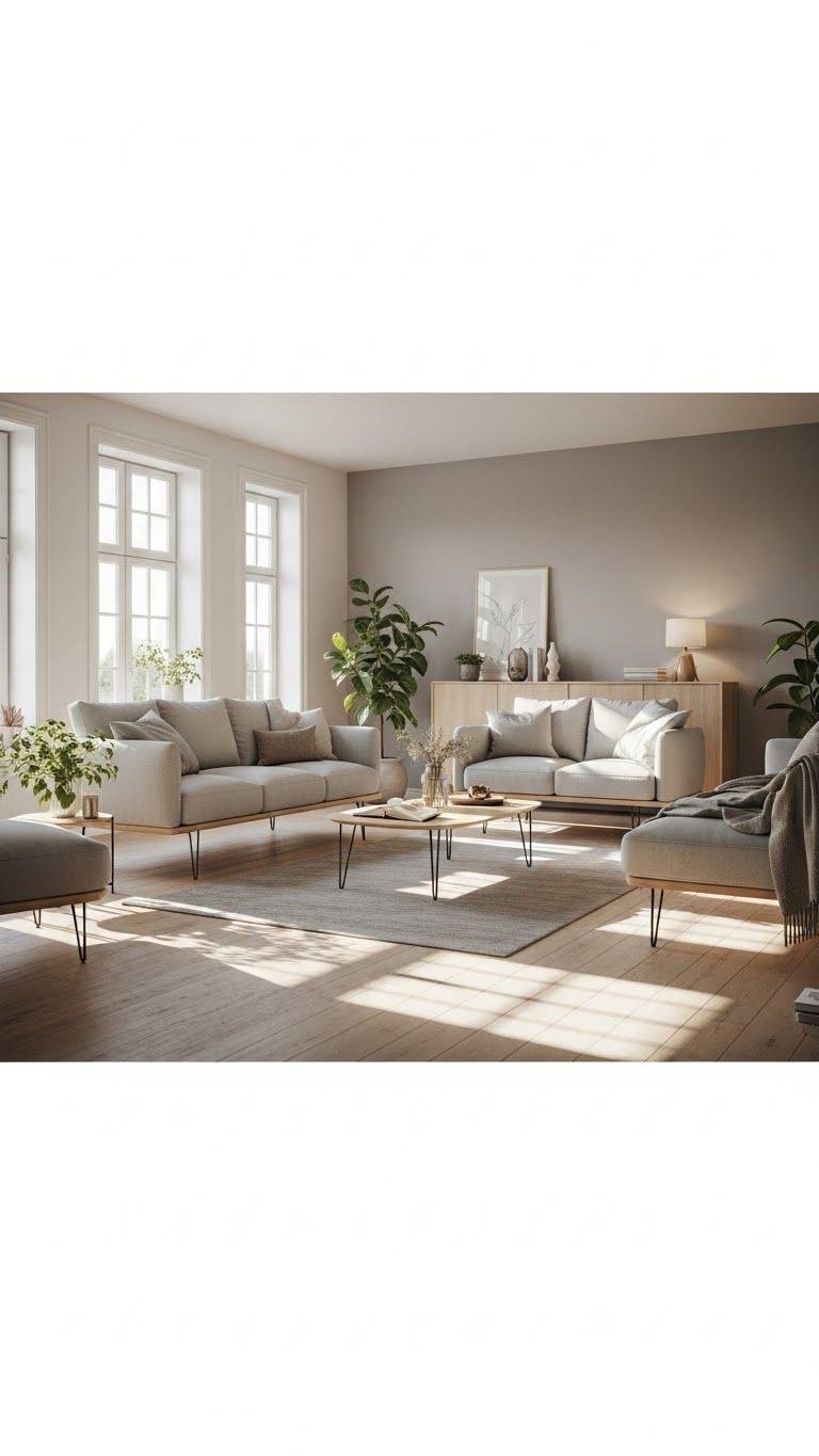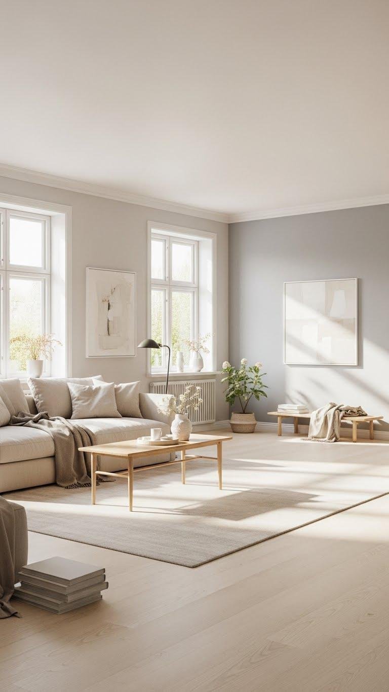Choose soft beige or muted greige for walls or large pieces so light bounces and zones feel cohesive.