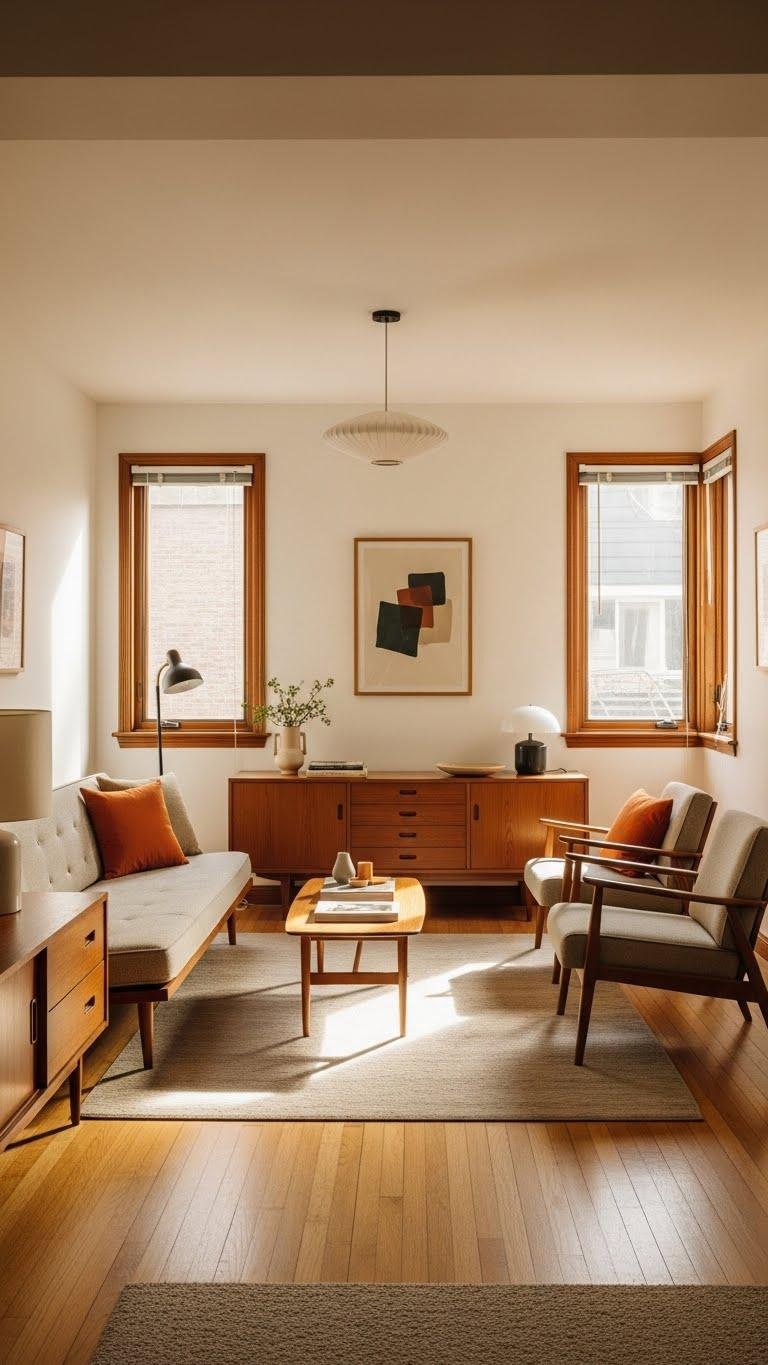 Often you’ll find that low-profile Mid-Century Modern pieces make small rooms feel larger because they sit closer to the floor, keep sightlines open, and pack purposeful design into compact footprints.