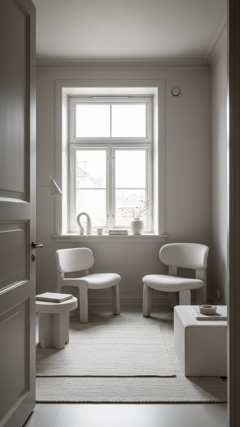 When you drench a small room in one light neutral shade, walls, trim, and furnishings blur into a calm, cohesive backdrop that instantly enlarges the space and lets texture and form take center stage. You’ll choose monochrome trim and a uniform ceiling to simplify sightlines, then layer tactile rugs, sculptural seating, and matte finishes so the room feels airy, intentional, and effortlessly free.