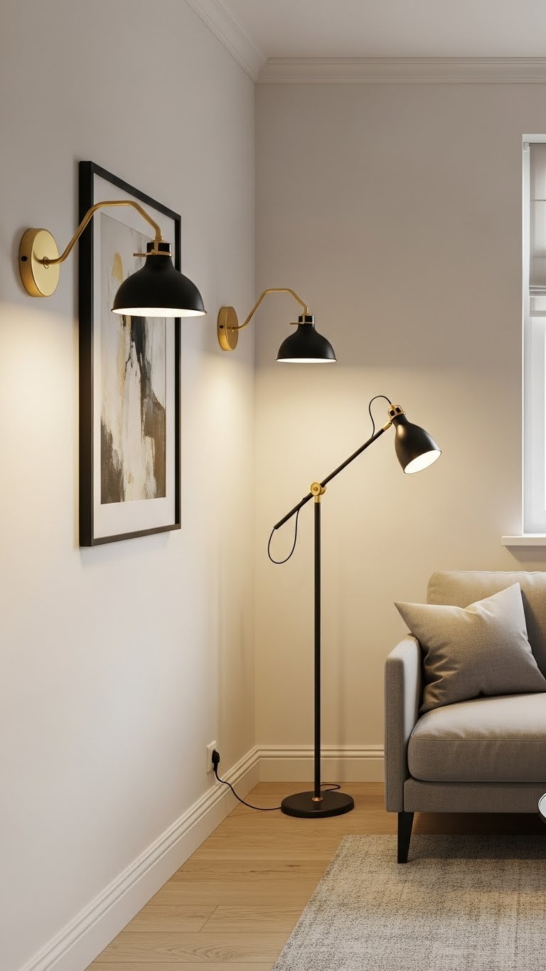 Installing wall sconces frees up floor space and instantly elevates the room’s silhouette, especially in a small living area where every inch counts.