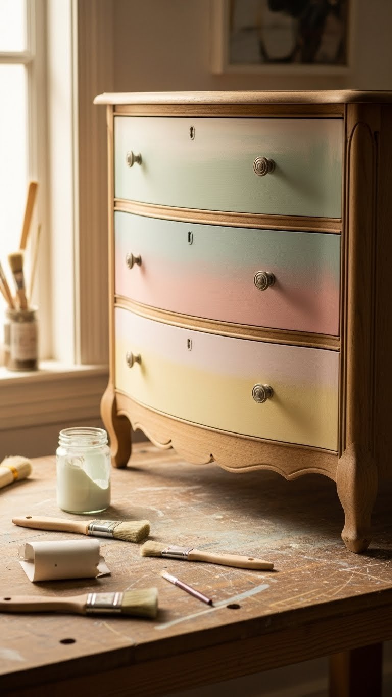 Give your tired pieces new life by refinishing them in soft spring hues that whisper rather than shout; a wash of sage, blush, or pale butter will modernize curves and reveal grain without overwhelming the room. You’ll prep, sand selectively, and use chalk paint for matte, forgiving coverage, then finish with delicate ombre glazing to blend tones—practical steps that free your style.