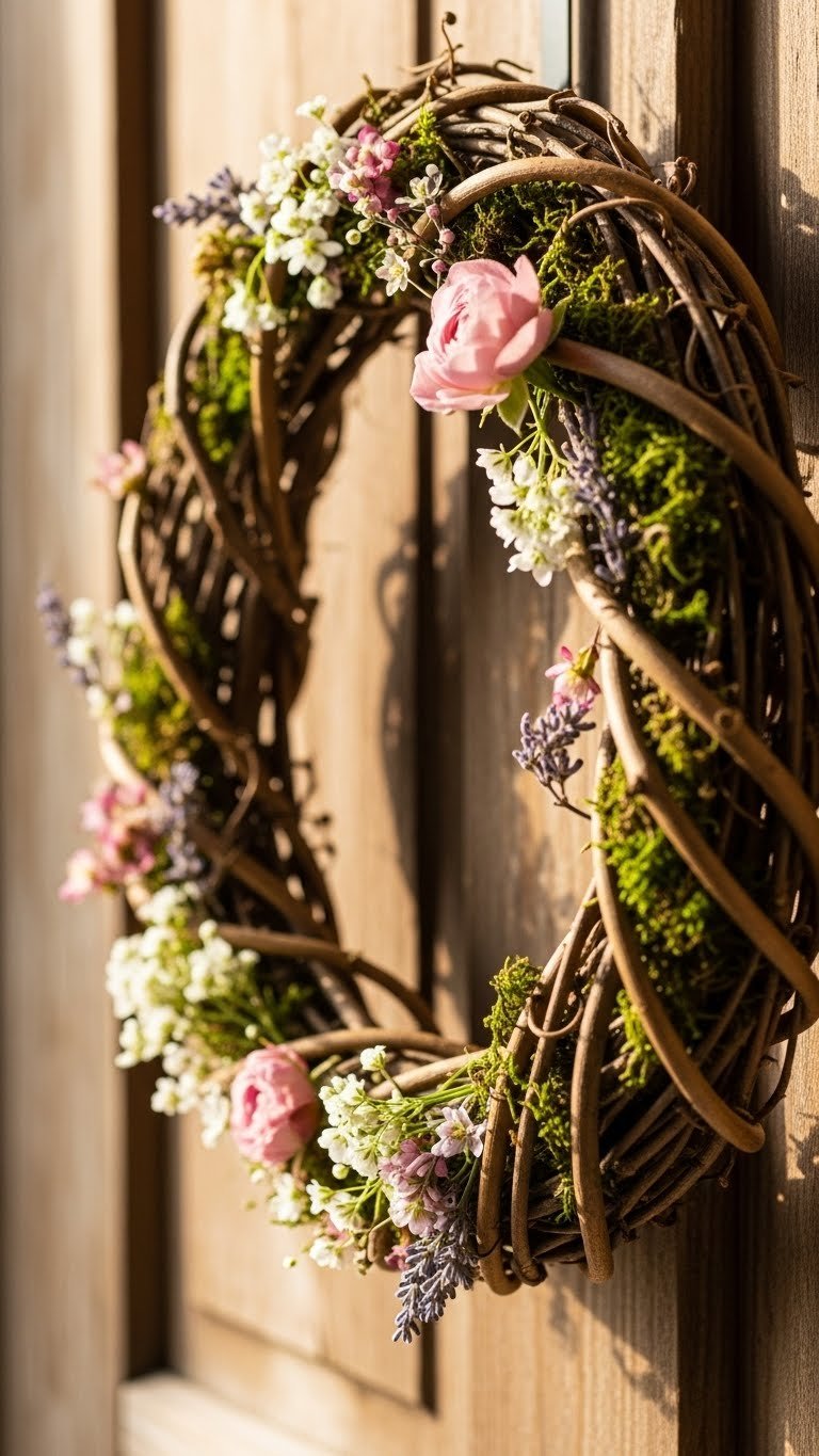 With a grapevine base as your starting point, you’ll build a wreath that feels both rustic and intentionally styled—twisted vines give movement while pockets of soft moss and clipped blooms add layered texture and color. You’ll layer grapevine textures with focused clusters of seasonal flowers, tuck in moss accents for softness, and finish with an asymmetric silhouette that reads effortless, free, and welcoming.
