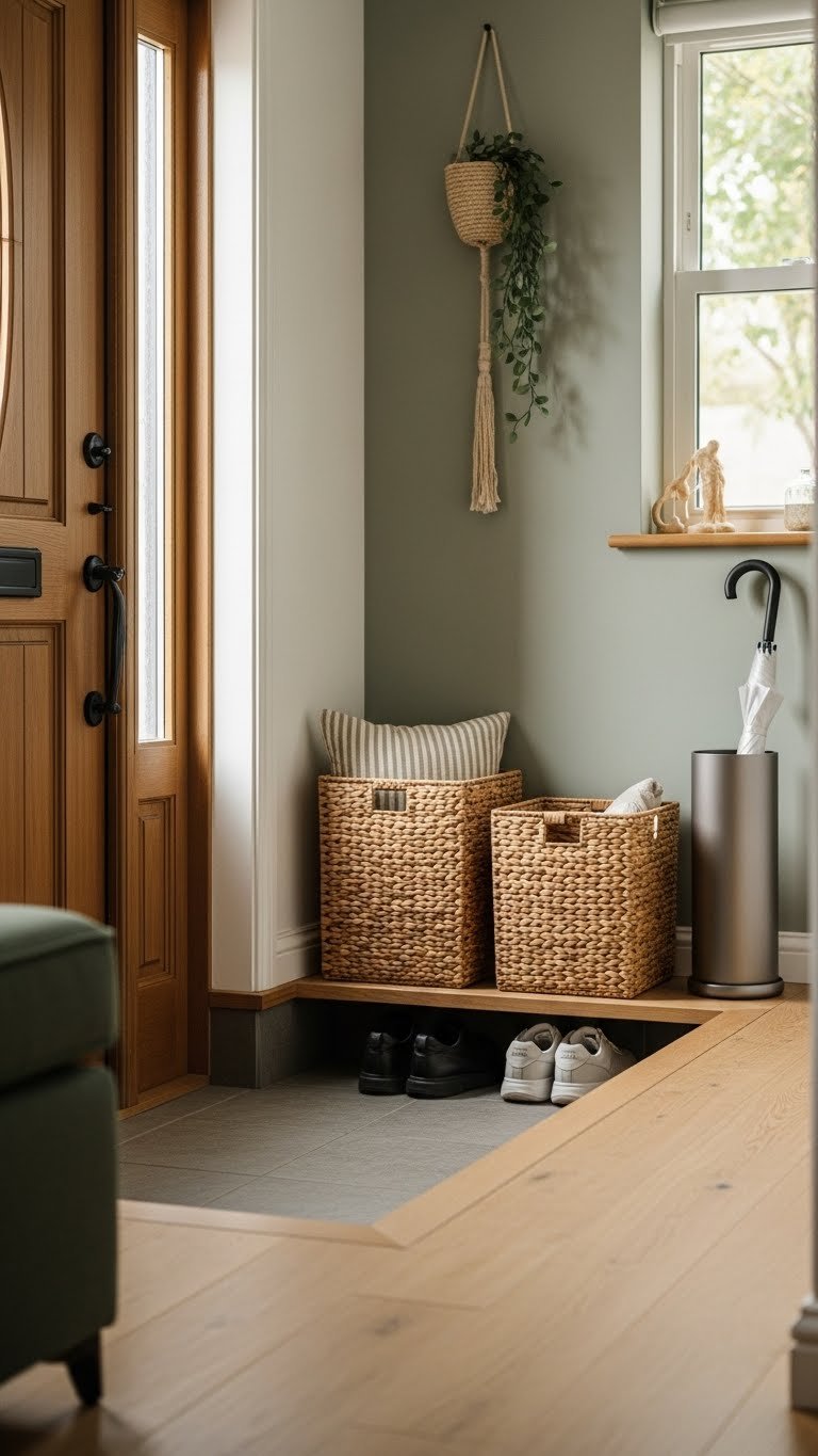 Tuck a couple of woven baskets near your door to corral shoes and umbrellas while keeping the entry feeling airy and curated.