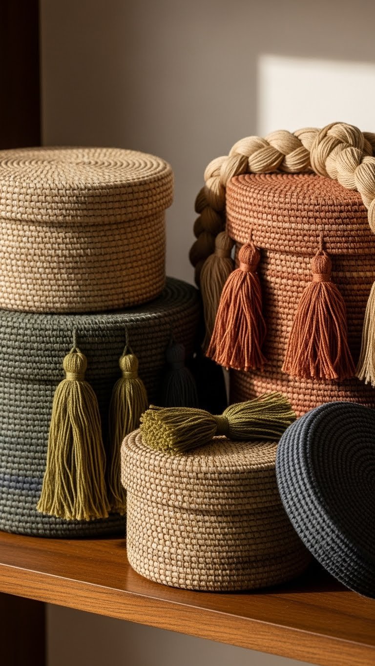 Texture is everything when you bring woven decorative boxes onto a shelf—you’ll feel their hand-crafted warmth before you even notice the pattern.