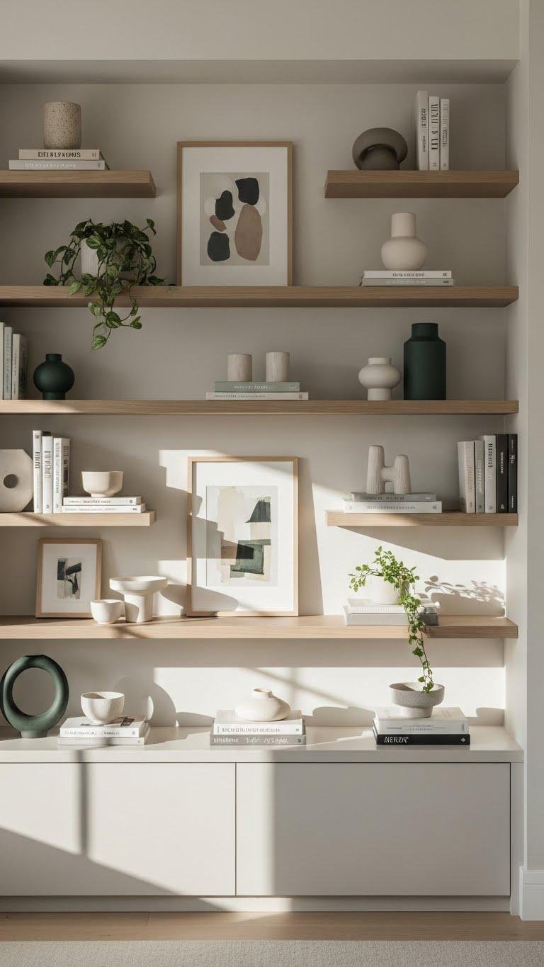 Choose consistent color stories, varied heights, and negative space so each shelf feels intentional and liberating, not cluttered.