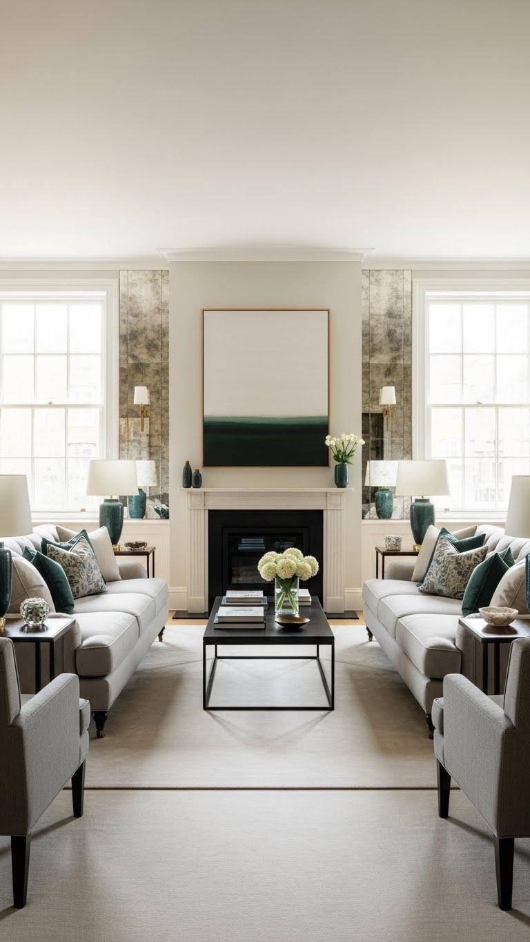 Though symmetry feels formal, you can use it to create calm, intentional balance in a living room without being rigid. Arrange matching sofas, side tables and lamps to frame a focal symmetry around art or a fireplace. Use mirror placement to amplify light and depth. You’ll maintain curated aesthetics while keeping layouts breathable, effortless, and distinctly yours.
