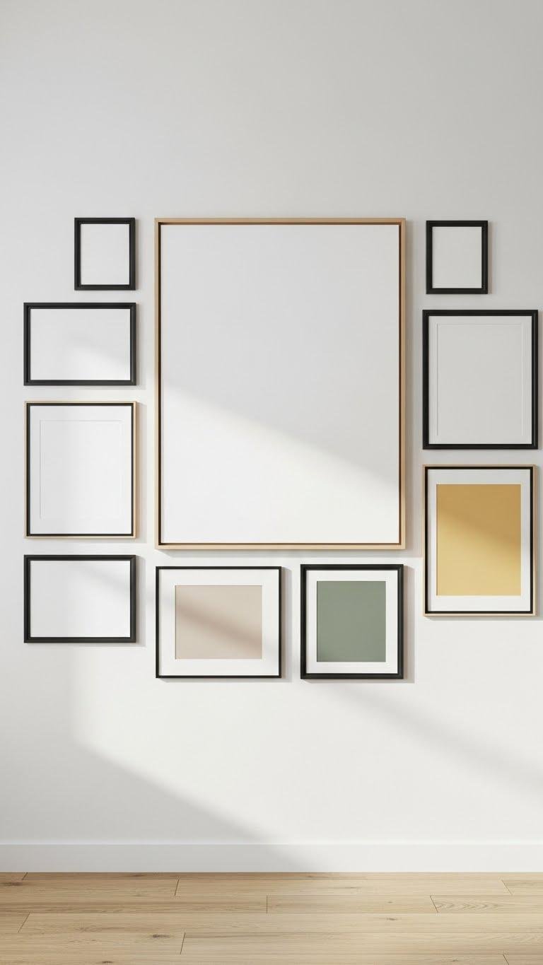 Decide gallery placement around sightlines, maintain frame cohesion, vary negative space, and edit relentlessly so the display feels liberated, purposeful, and refined.