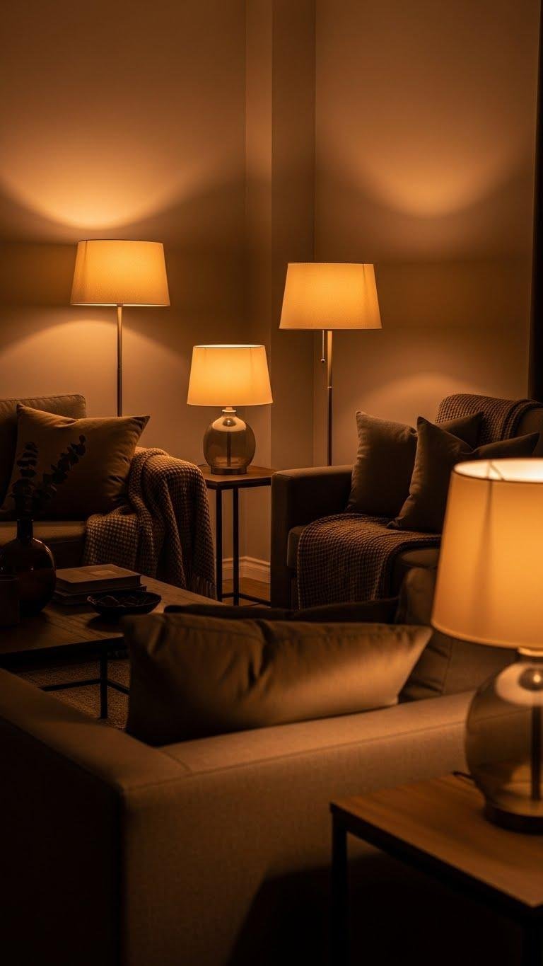 You pick soft lampshades, dimmable fixtures and amber accents to sculpt mood, balancing task and ambient light.