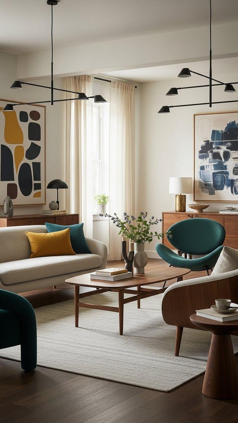 You’ll mix retro silhouettes and walnut finishes with minimalist lighting, bold art, and sculptural seating. Prioritize balance: keep clean lines, let tapered legs breathe, and choose statement contemporary elements that liberate the room without overpowering its mid-century soul.