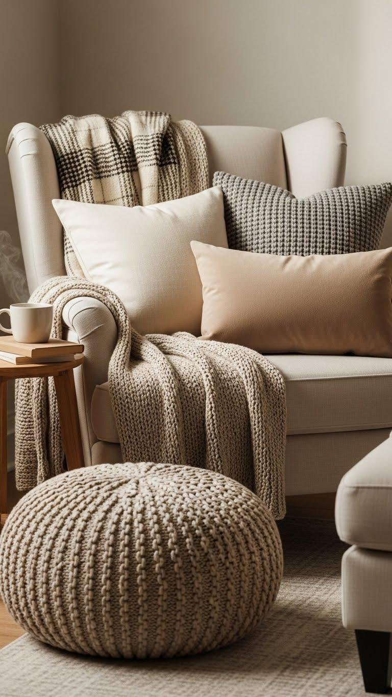 When you layer textured throws and pillows into a seating nook, you instantly add depth, warmth, and tactile interest without compromising the room’s clean lines. Curate a reading nook with plaid throws, a knit pouf and structured pillows; pair with an accent ottoman to anchor layout. You’ll create a disciplined yet inviting corner that respects minimalism while encouraging relaxed freedom.
