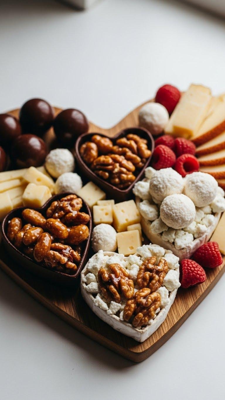Set out a heart-shaped serving board and watch simple chocolates and little treats feel instantly festive.