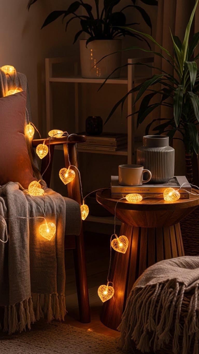 Heart-Shaped String Lights for a Cozy Corner