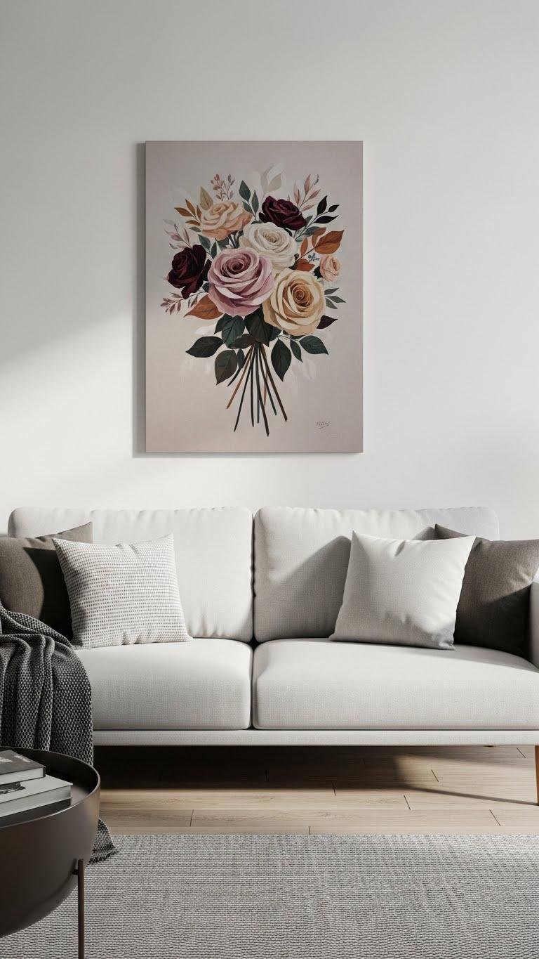 Anchor your sofa with a rose bouquet canvas to give the room an instant focal point that feels both romantic and modern.