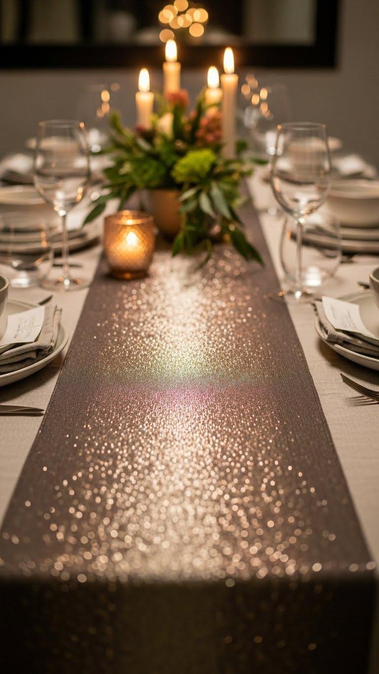 With a whisper of sheen running down the center of your table, a metallic-threaded runner instantly upgrades a casual setting into something quietly luxe. You’ll love how the metallic texture and threaded shimmer catch candlelight without shouting.