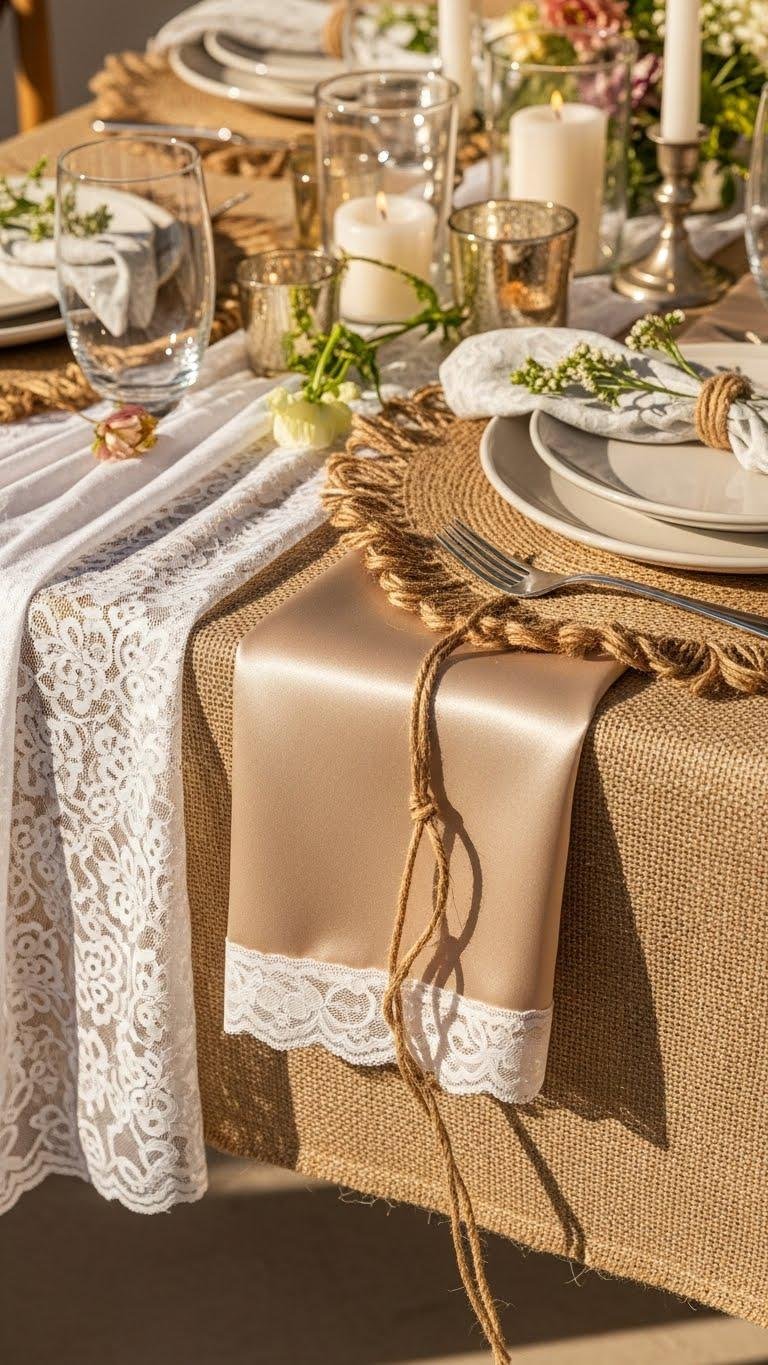 Lace, Satin, and Burlap Fabric Combinations